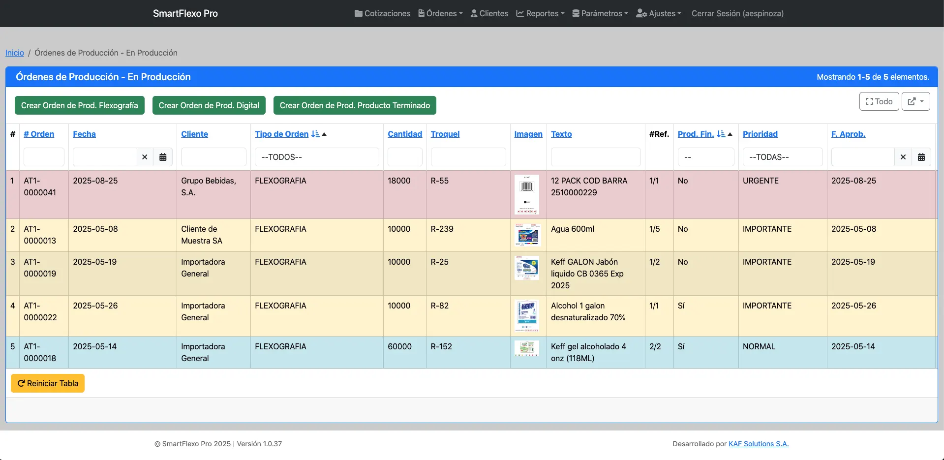 Prioridades automáticas visibles: los operadores visualizan en todo momento cuáles órdenes son más urgentes, sin necesidad de preguntar ni generar confusión entre turnos o departamentos.